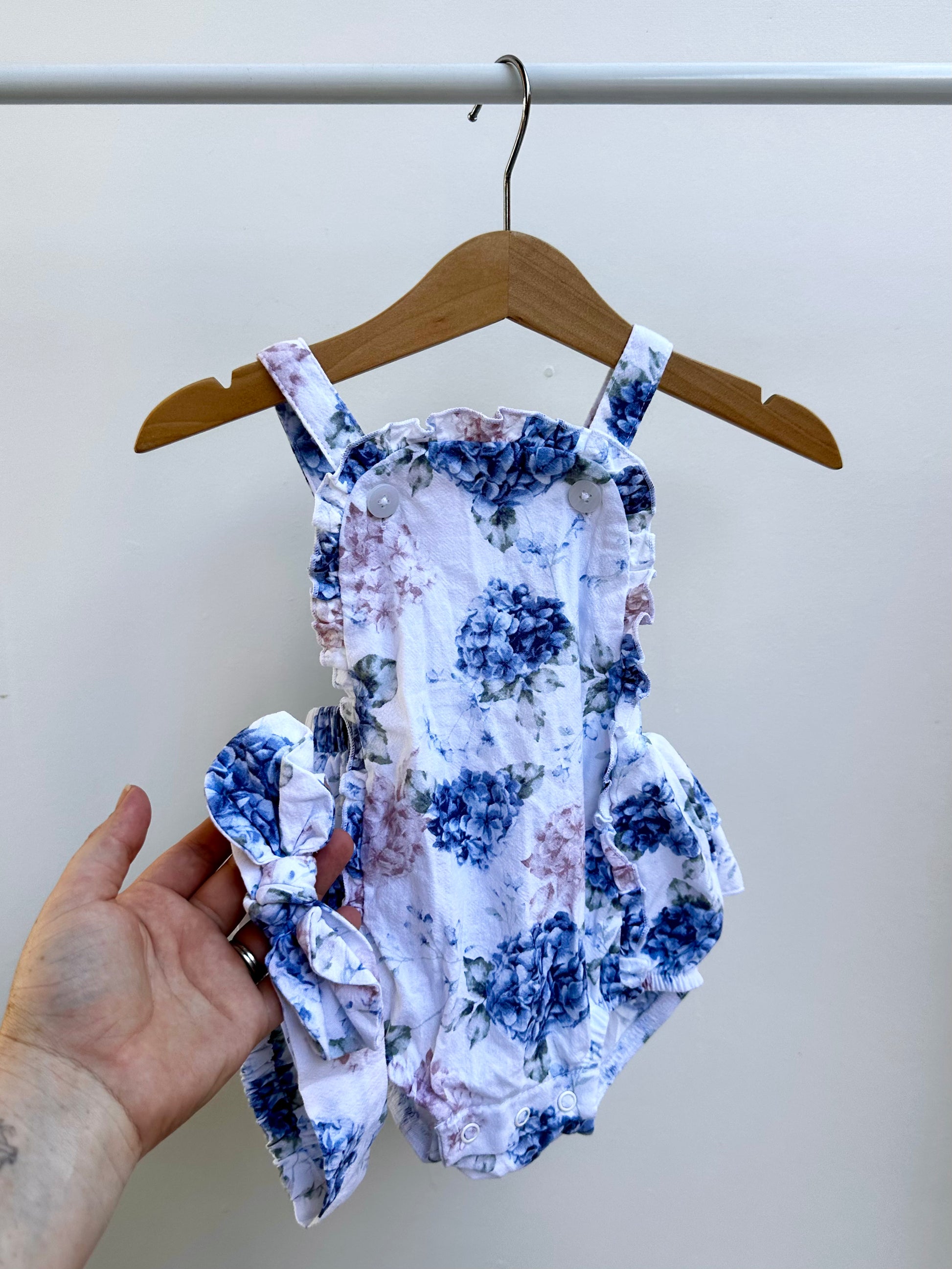 Preloved white floral Baby Berry romper and headband