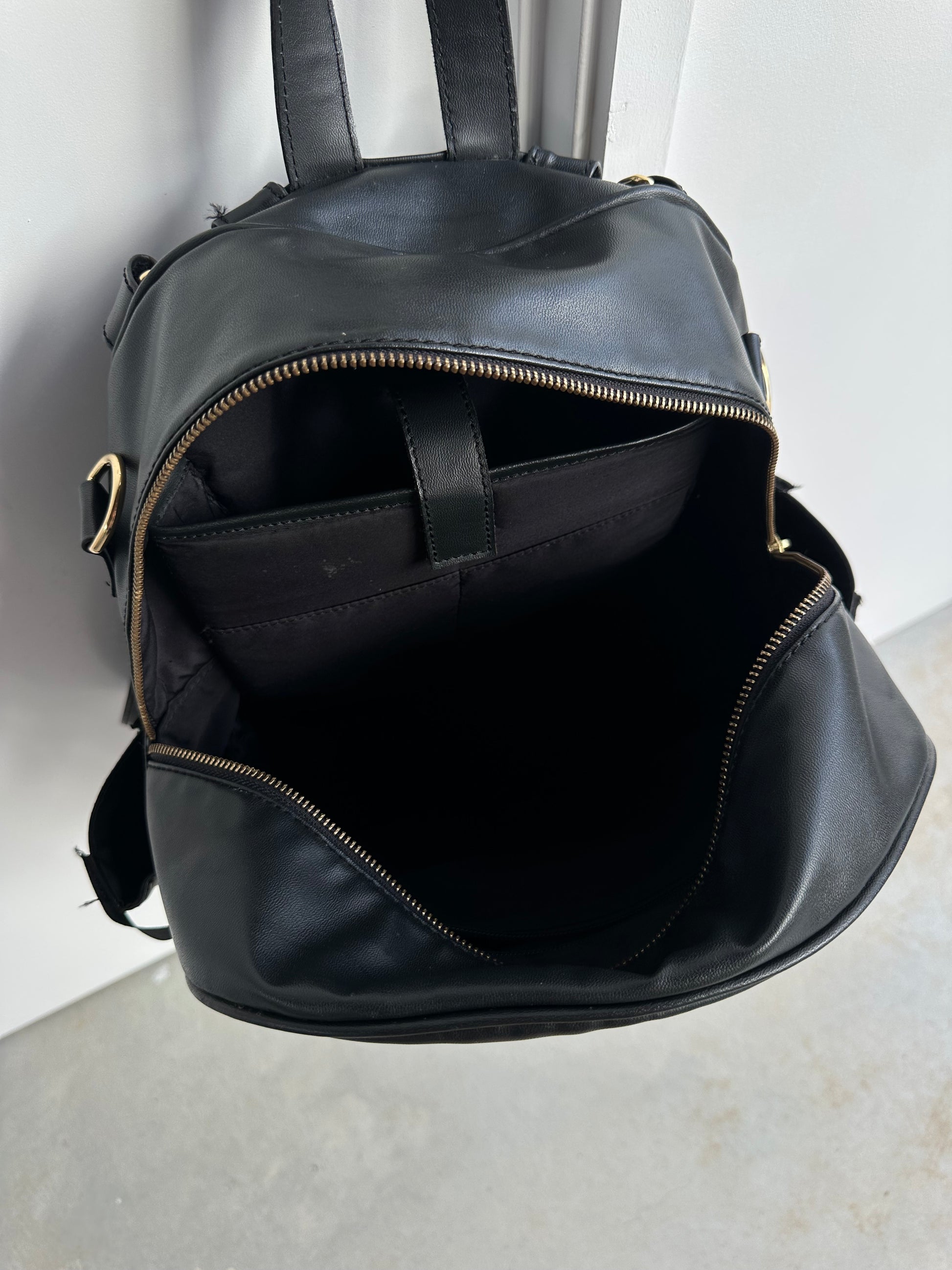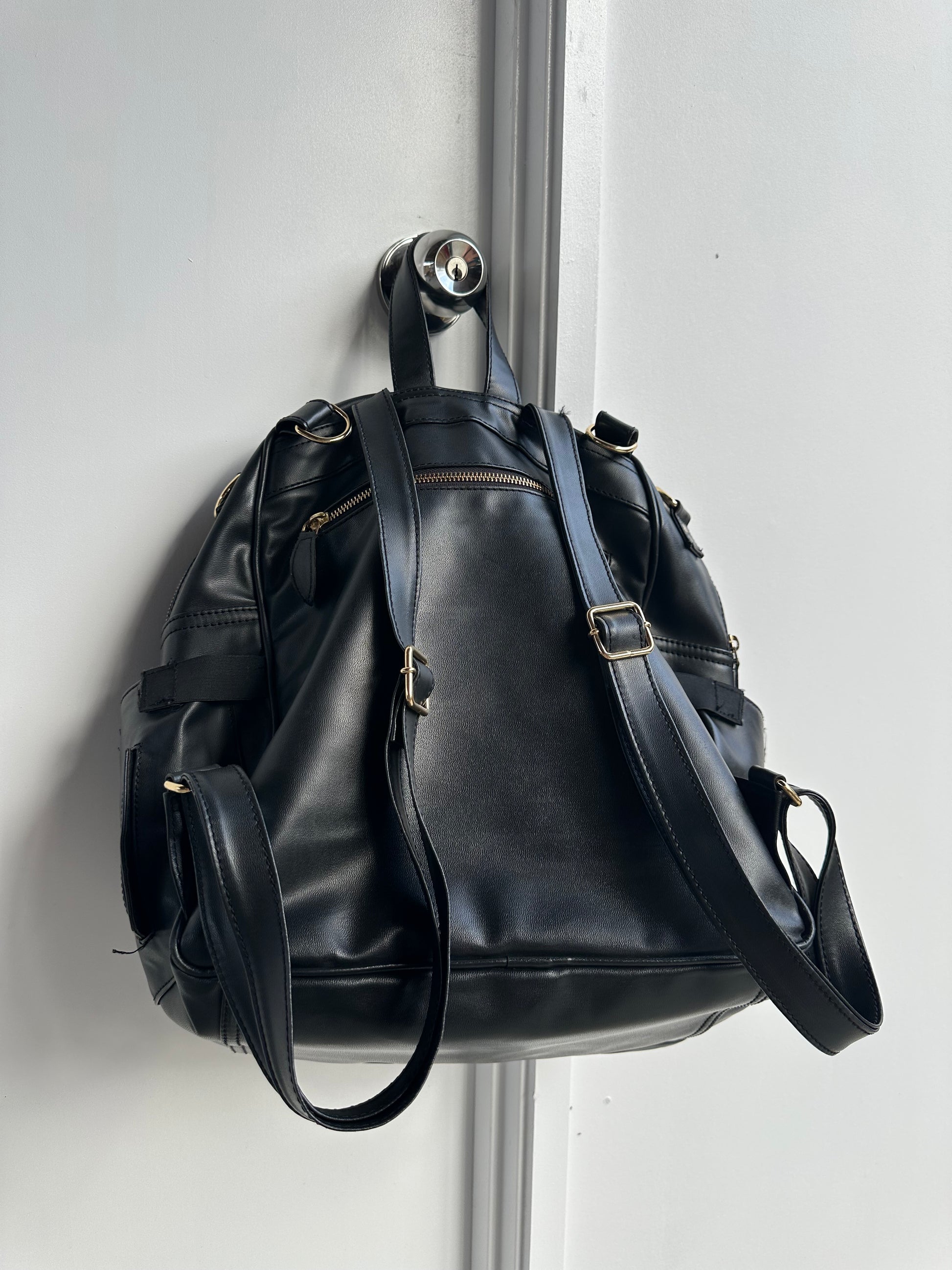 Vegan leather backpack.
